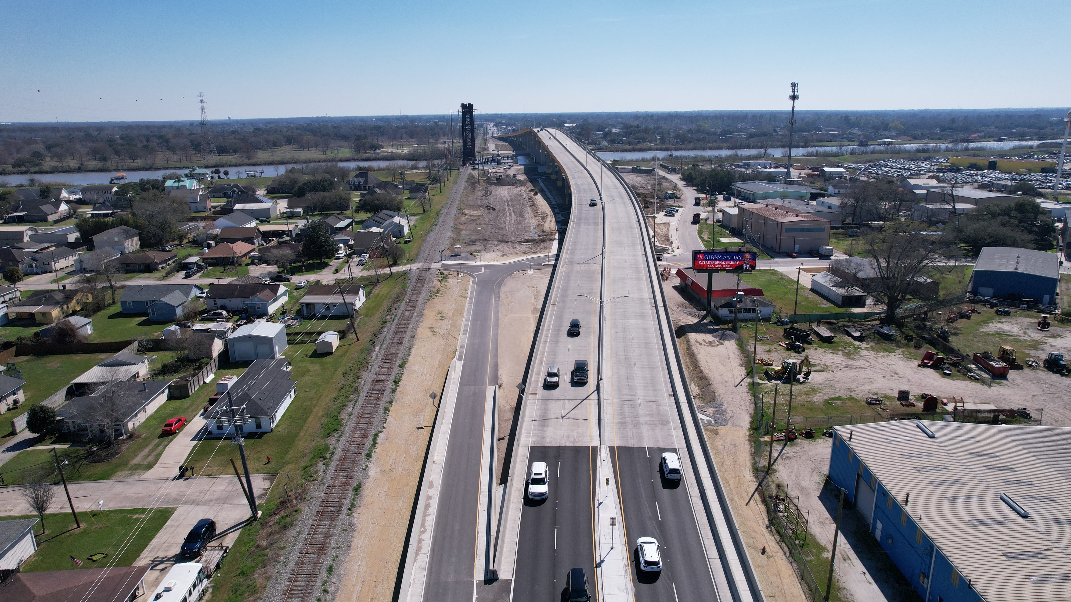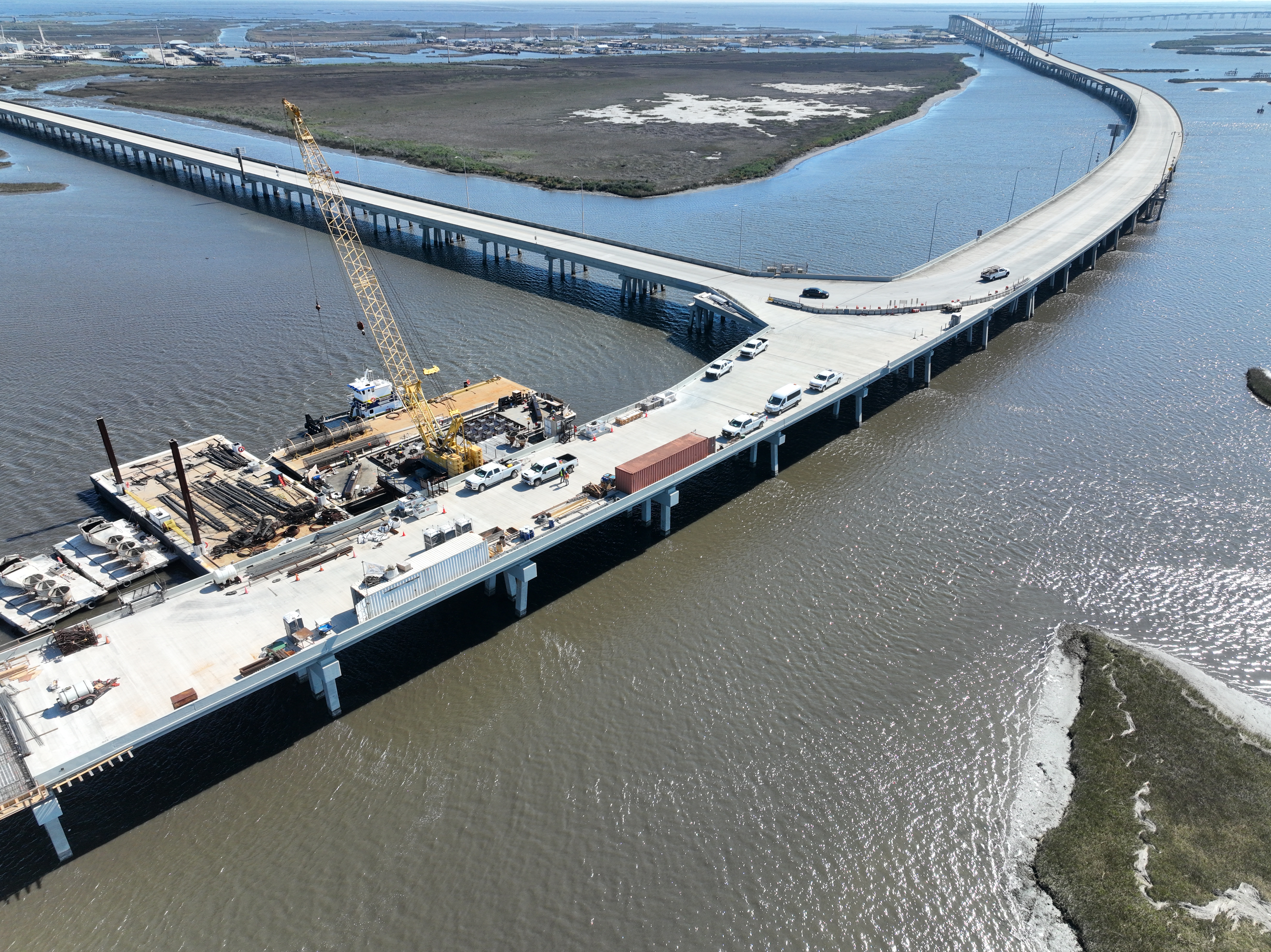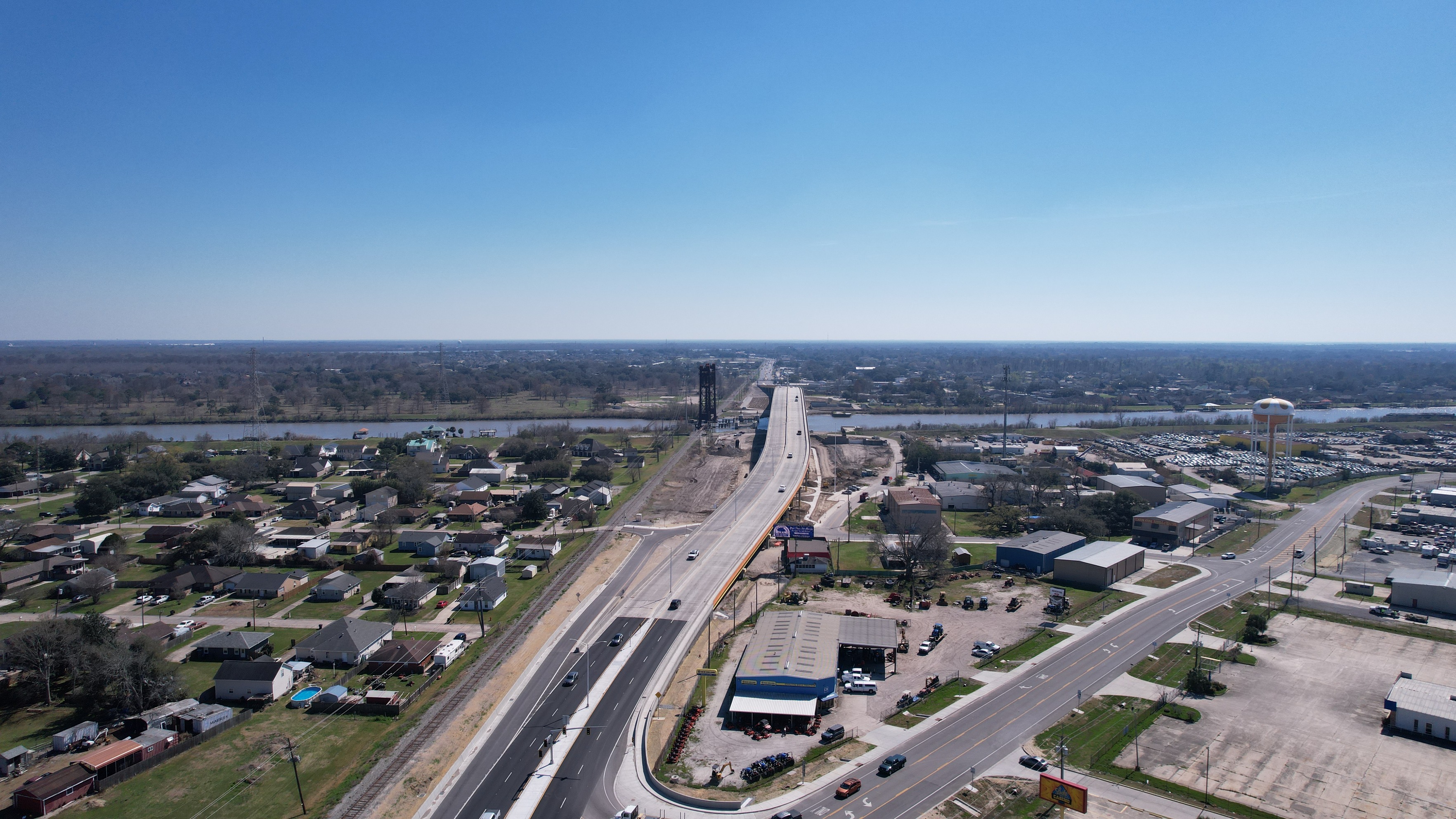 Construction is underway with LA 1 Phase 2 to expand the elevated highway an additional eight miles from Golden Meadow. LA 1 Phase 2 will replace the existing low-lying roadway, often overtopped and damaged during storm events. This expansion will provide a more convenient evacuation route during hurricane and flooding events, a more reliable shipping route, and increased accessibility opportunities for tourism. This project is expected to be completed in 2027 and will be transferred to Lafourche Parish.