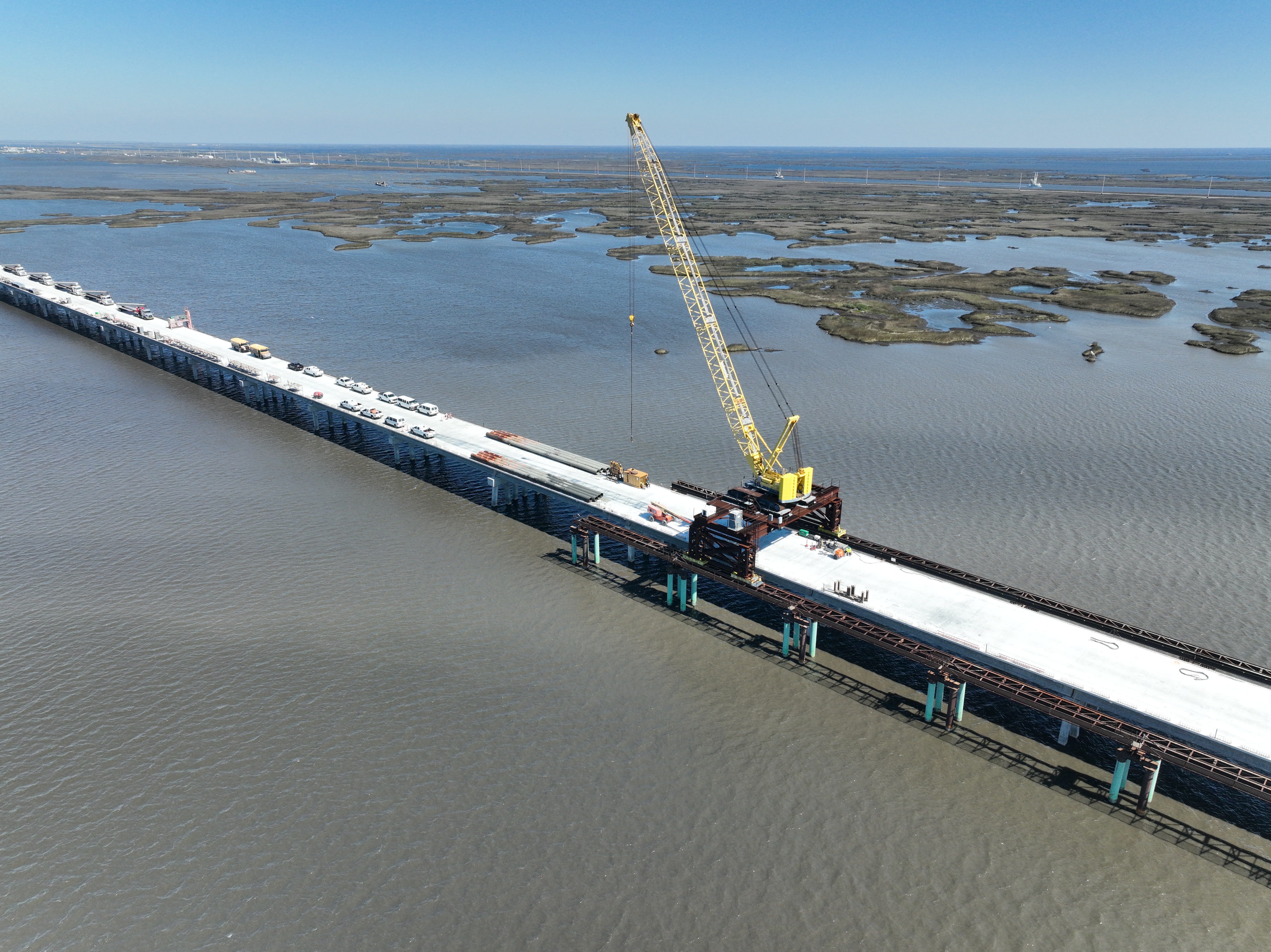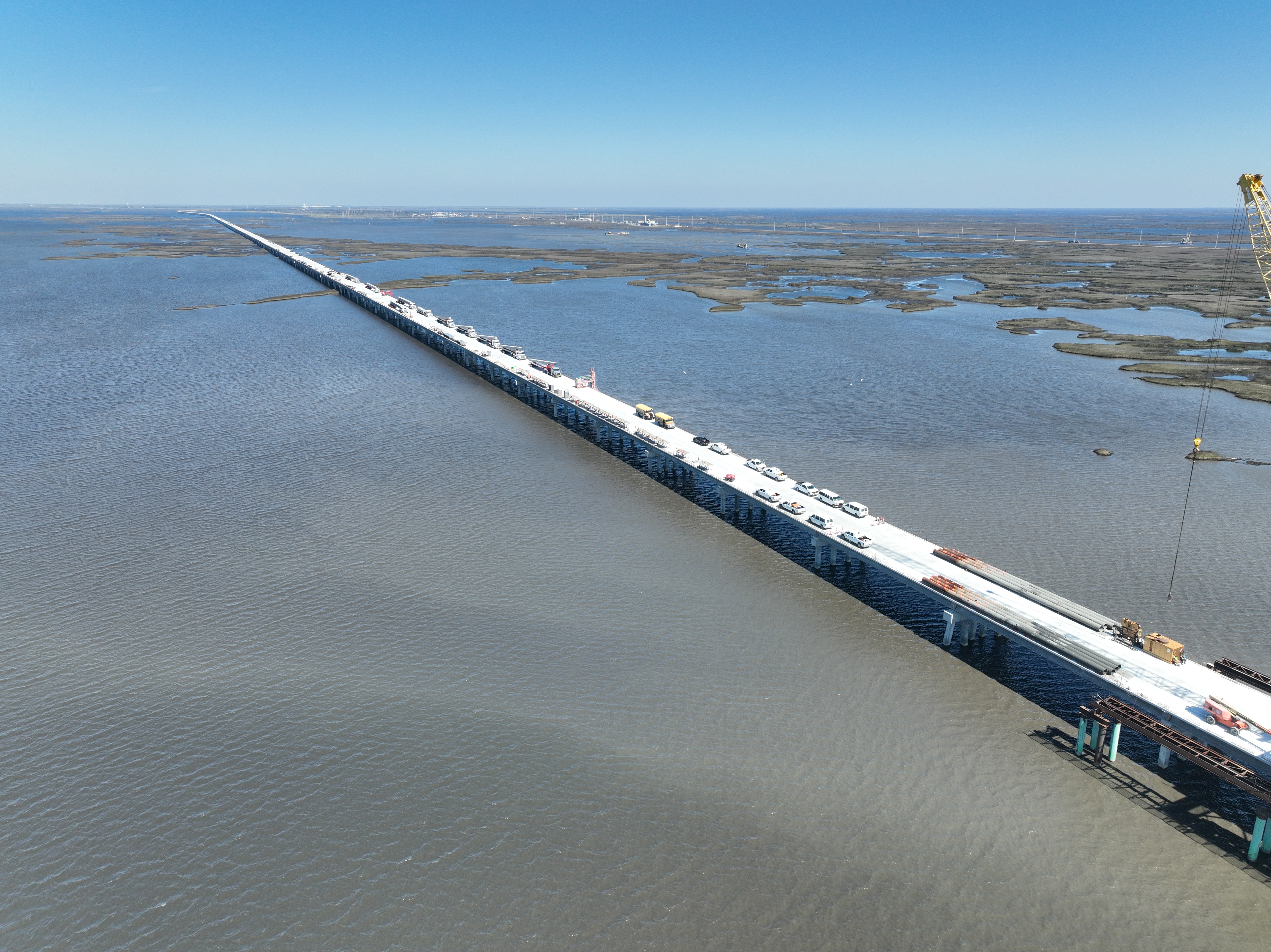 The I-10 Calcasieu River Bridge Project will connect the cities of Lake Charles and Westlake. The project length is approximately 9 miles and will replace the current bridge and parts of the interstate, ramps, service roads, and utilities to make the travel corridor more efficient to navigate. The existing bridge was built in the early 1950s and predates the interstate system. It is narrow, lacks shoulders, and has steep approach grades. The average daily number of vehicles, approximately 90,000, traveling the Calcasieu River Bridge section of I-10 exceeds the design capacity of 37,000 vehicles per day. Once completed (expected by 2031), the old bridge will be removed. The new bridge will utilize the existing GeauxPass toll system.